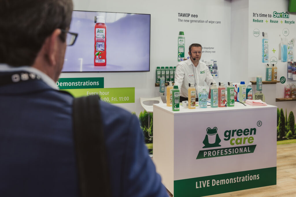 Every day at the Werner & Mertz Professional booth, it was apparent that everyone had the circular economy in mind. Many visitors took the time to talk with the team about concrete challenges, new requirements and potential solutions. During info exchanges among experts and practical live demonstrations, at lectures and in interviews, guests at the booth had the chance to see and hear how sustainable product concepts can be effectively linked to powerful cleaning performance and how much strength can be tapped in sustainable ideas and solutions when they are rigorously implemented for a genuine circular economy. A dialog developed that has an effect way beyond the trade show.