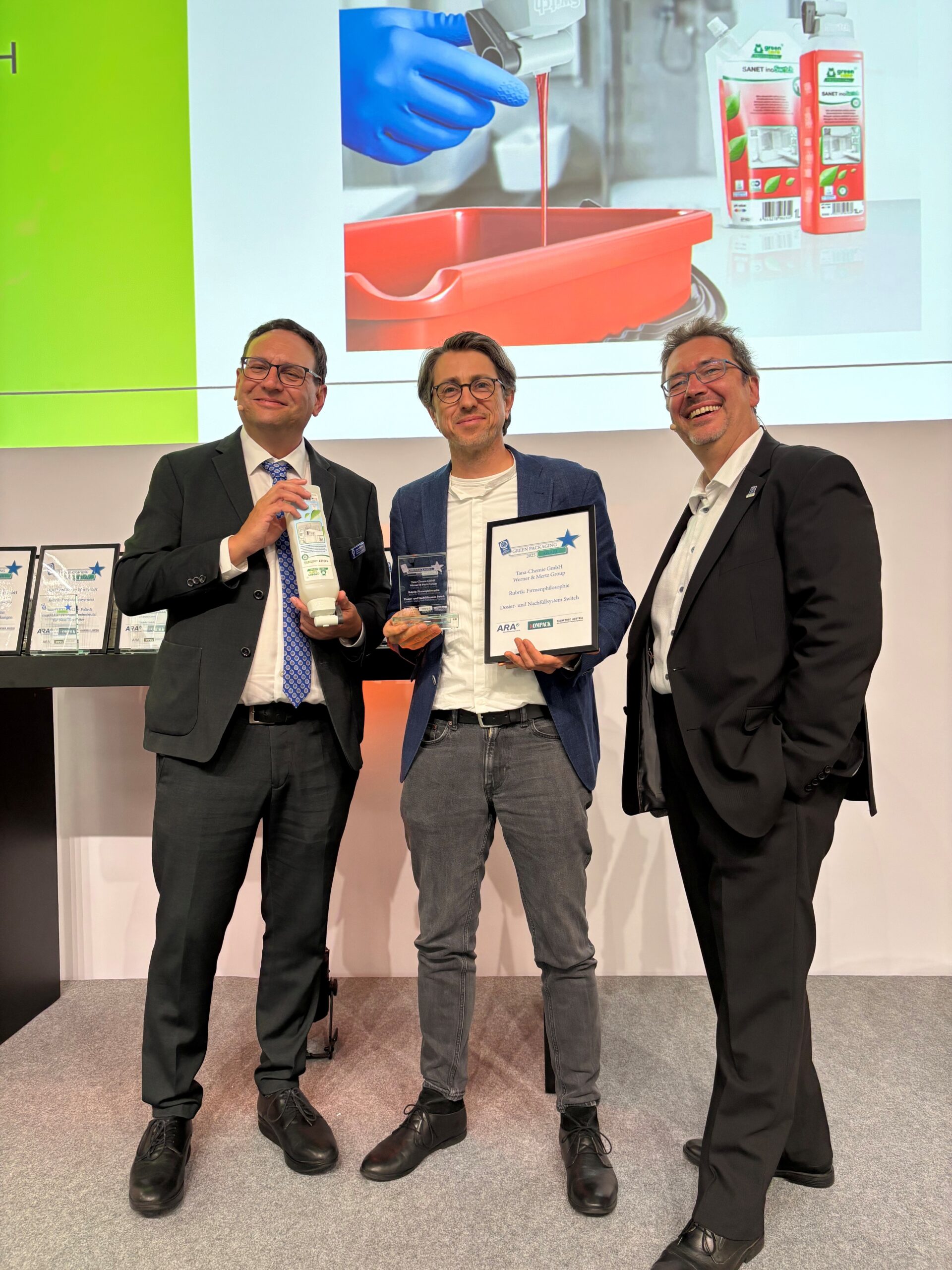 Werner & Mertz Professional received another prestigious award for its innovative dosing and refill system Switch. On the evening of September 24, 2025, the Green Packaging Star Award was presented for the 17th time. The Green Packaging Star Award recognizes particularly sustainable packaging solutions that protect not only the product but also the environment. It is presented annually at the FACHPACK packaging trade fair in Nuremberg, which has been the central meeting place for the packaging industry in Europe for over 40 years and offers a comprehensive program covering all relevant topics in the packaging industry. The award ceremony is organized by the WPO, the World Packaging Organization, and KOMPACK, the magazine for packaging and logistics solutions based in Austria.