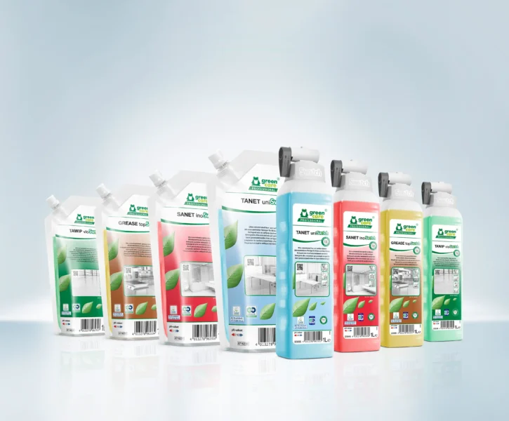 Erittäin tiivistetyt formulaatiot pullossa, jossa on annostelukorkki ja täyttöpussi.