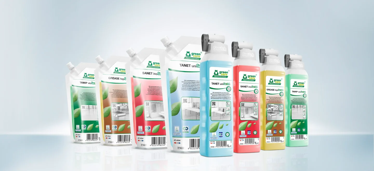 Our innovative Switch System combines efficient, exact dosing without extra equipment with the advantages of sustainable, economical refilling. Available for four different areas of application, the ultra-concentrated formulations satisfy the highest sustainability requirements.