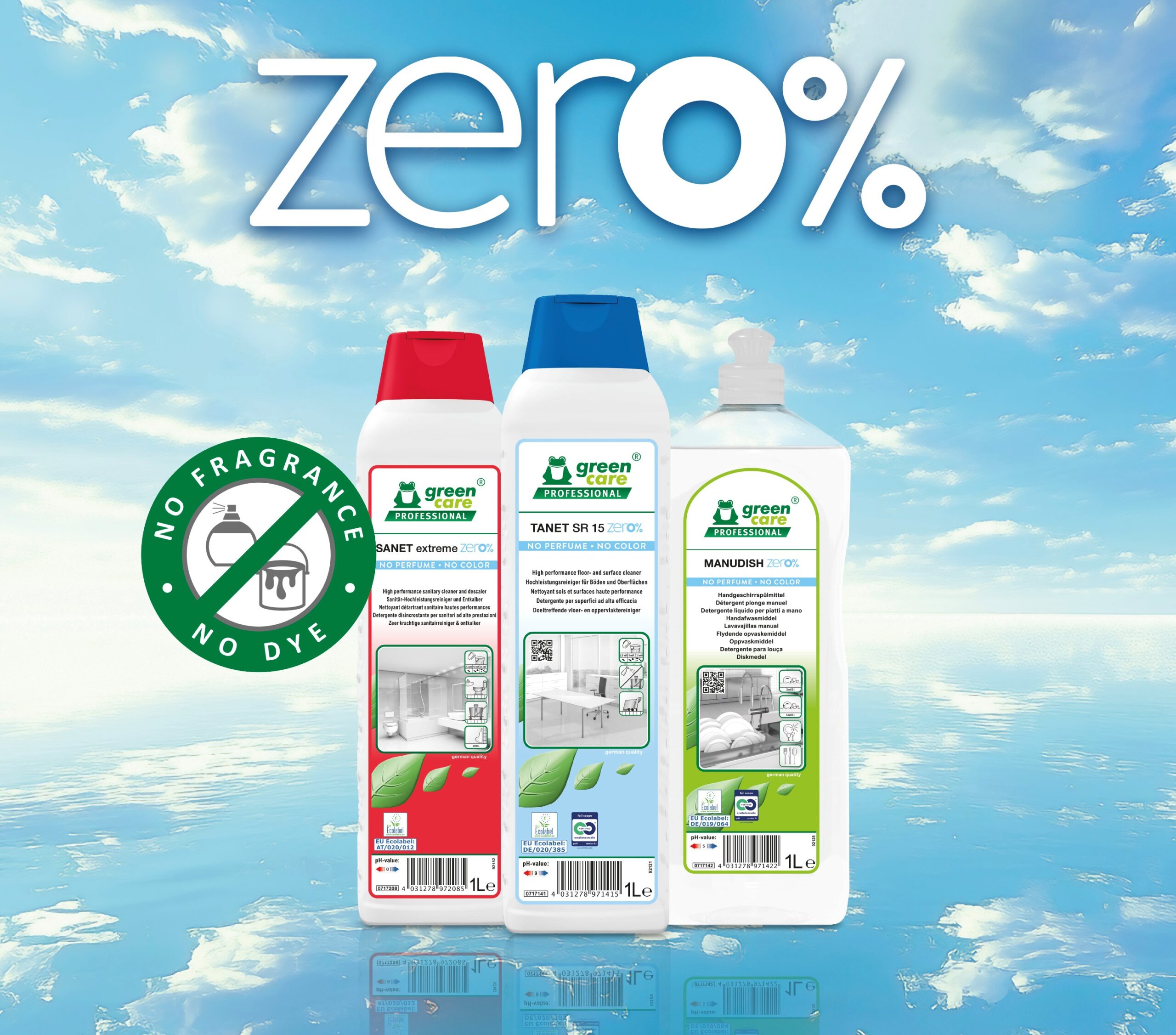 Free of dyes and odorless, with maximum cleaning power: For the new Zero product range, Werner & Mertz Professional developed cleaning products free of all dyes and fragrances with special consideration given to allergy sufferers. This new edition of the proven F-Range comes to the market and it includes 14 high-performance cleaning and care products for use in building cleaning. -