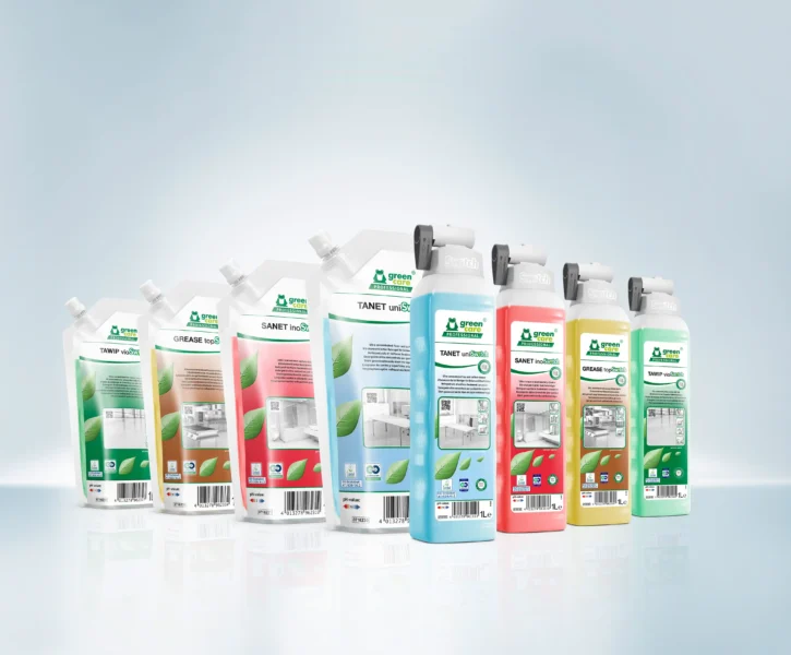 Ultrakonsentrerte formuleringer i flaske med doseringshette og påfyllingspose.