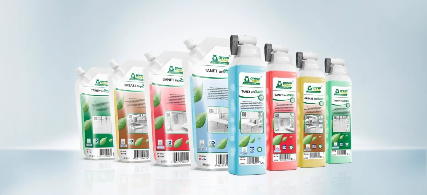 Our innovative Switch System combines efficient, exact dosing without extra equipment with the advantages of sustainable, economical refilling. Available for four different areas of application, the ultra-concentrated formulations satisfy the highest sustainability requirements.